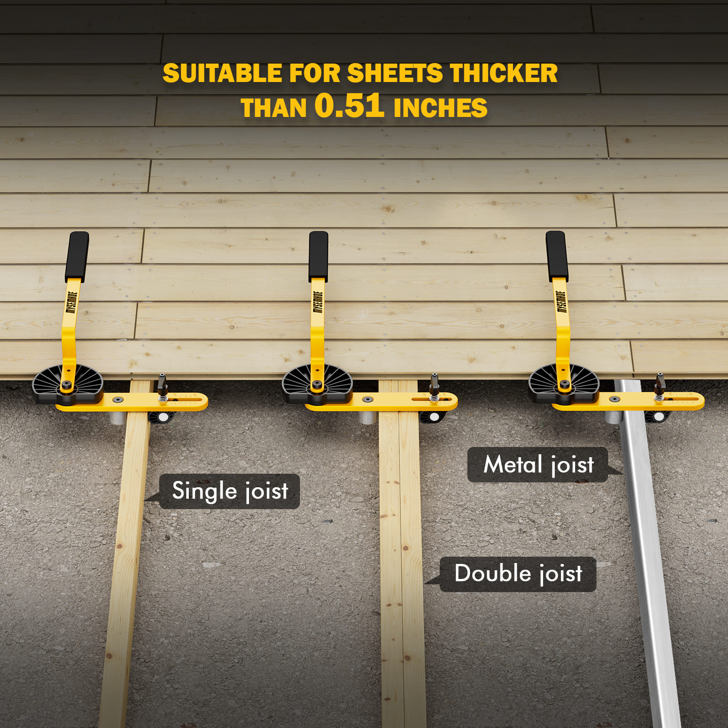 - Optimized for Efficiency: Our deck straightening tools feature adjustable joist spacing (1.36″-2.62″ in locked condition and 1.5″-3″ in released sag condition), compatible with boards 0.51″ and thicker. The adjustable pallet wheels allow multi-angle straightening to meet strict construction site requirements.